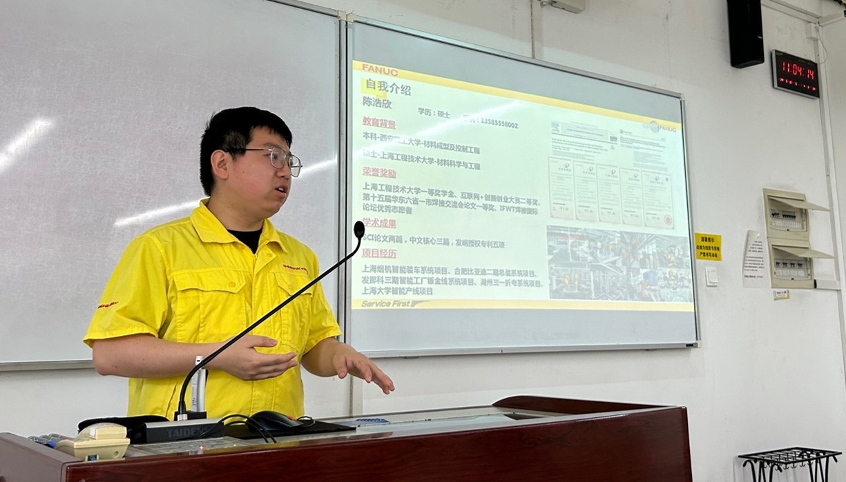 5月10号上午,William威廉英国官网邀请上海发那科机器人有限公司技术经理陈浩欣走进《焊接过程测量与计算机控制》课堂,在教学楼D211为公司焊接工程与技术专业2021级本科生和部分研究生带来了一堂科技感满满的“发那科焊接机器人及其智能化应用”授课,让员工们更加深入地了解智能化焊接过程中各种传感器检测与计算机控制的重要性。