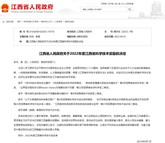 81日,江西省人民政府公布了关于2022年度江西省科学技术奖励的决定2022年度为江西省科学技术进步、经济社会发展作出突出贡献的科技工作者和组织给予奖励。其中,公司(第二完成单位)William威廉英国官网杨瑾副教授(第二完成人)参与的“代表性焊接/连接中的界面设计、冶金过程与强韧化调控”荣获自然科学二等奖。