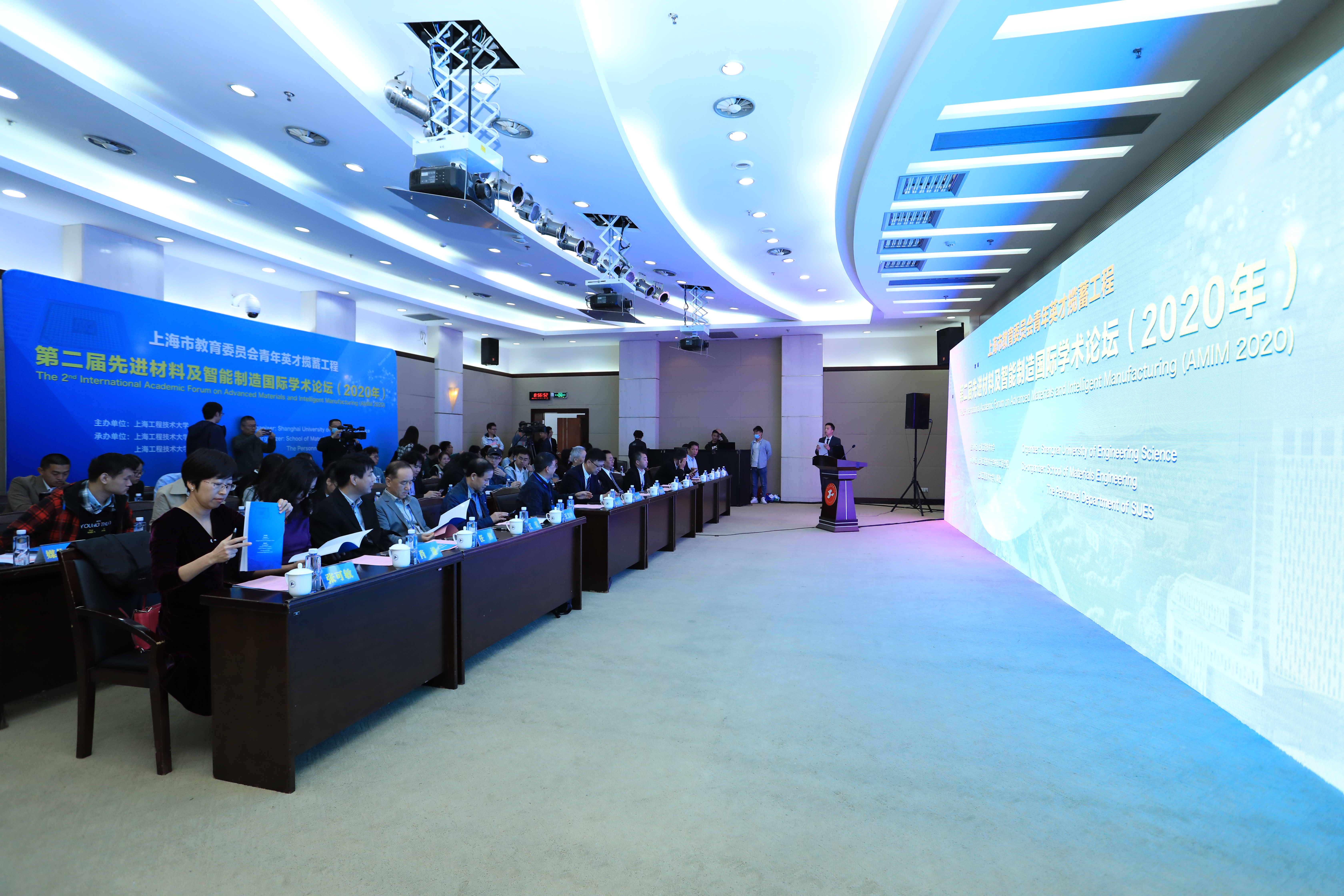 10月17-18日,依托上海市教育委员会青年英才揽蓄工程,由williamhill威廉官网主办,williamhill威廉官网William威廉英国官网和williamhill威廉官网人事处共同承办,第二届先进材料及智能制造国际学术论坛(The 2nd International Academic Forum on Advanced Materials and Intelligent Manufacturing,AMIM2020)在公司松江校区举行。由于疫情原因,论坛采用线上和线下结合的方式,线下现场报告在公司松江校区图文信息中心第三报告厅进行,线上报告则利用腾讯会议平台进行同步直播。来自法国、美国、英国、葡萄牙、瑞士、新加坡、伊朗、韩国以及中国的专家学者共聚一堂,就先进材料及智能制造领域(机械、电气、化工等)内热点问题进行了热烈的讨论交流。