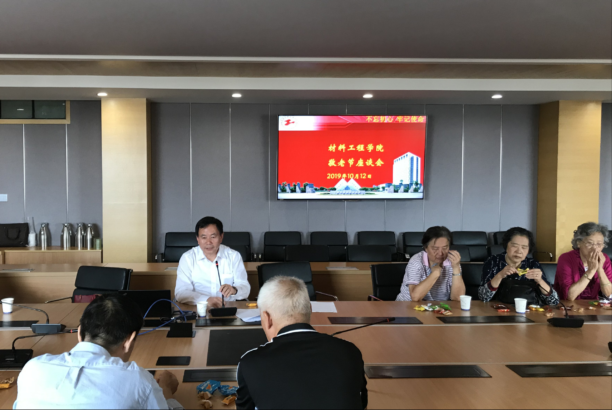 敬老活动由公司工会主席冷培榆主持,公司经理周细应介绍了公司目前发展的状况与未来发展趋势,回顾了在团队队伍建设、学科专业发展、人才培养、教学成果、科学研究等方面取得的成绩。同时指出,公司有现在的发展,离不开每一位退休老师的贡献,老同志是时代的见证者、亲历者和实践者,值此中华人民共和国成立70周年之际,发扬全社会尊老、敬老、爱老、助老的传统美德,与老同志共享公司建设发展成果。