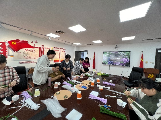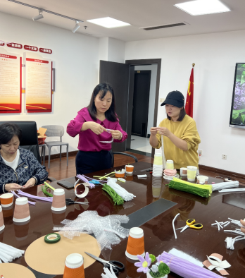 在花艺师的热情引导下,活动正式拉开帷幕。花艺讲师们从专业角度给大家讲解了制作工具和使用方法,详细介绍了扭扭棒的基本制作方法,从如何弯曲、扭转扭扭棒以塑造出不同的形状,到怎样巧妙地将各个部件组合在一起,并介绍了盆栽创作的制作方法和注意事项。老师们全神贯注地聆听着,眼睛紧紧地盯着老师的示范,生怕错过任何一个关键的细节。在花艺师们的指导下老师们首先从最简单的花盆开始做起,逐渐到荷叶,花朵和花苞,有的老师在基础花型上还进行了再创造,制作出了精美的盆栽。看到自己亲手制作的花朵,大家疲惫的身心瞬间被治愈;有的老师还主动承担起助教的角色,帮助其他老师进行制作,增进了同事之间的交流与协作,增强了团队的凝聚力。