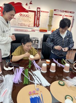 大家围坐在一起,进行手工制作,互相帮助,互相交流,分享心得体会和日常趣事,氛围和谐温馨。此次扭扭花盆栽制作活动,不仅为教师们提供了展示自我、放松身心的平台,也让他们更加深入地了解了手工的独特魅力。
