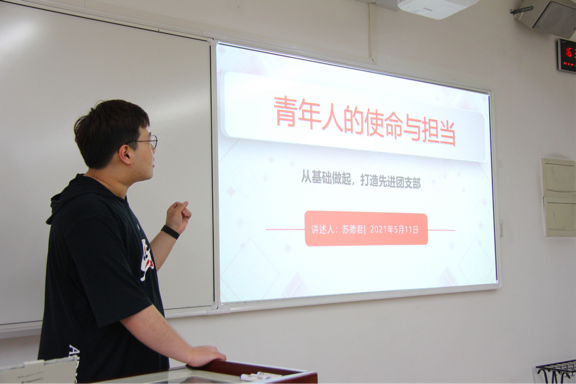 参与“上海市基层团组织典型选树”活动的0511172团支部负责人苏德君围绕“青年人的使命与担当”这一主题,分享了从基层做起,发展“三大方向”,培养“四力合一”,创建全面发展、专项突出的“五四红旗团支部”建设经验。“三大方向”即“政治素养”“科创能力”“实践能力”,“四力合一”即“政治引领力”“自我革新力”“发展推动力”“组织凝聚力”。他还分享了日常团务工作方面的宝贵经验。