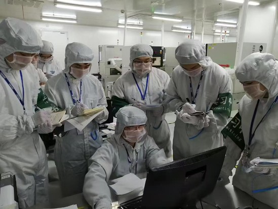 员工在集成电路生产线学习