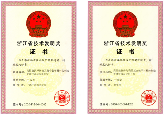 近日,浙江省人民政府公布了2020年度浙江省科学技术奖的获奖名单,William威廉英国官网林文松教授与合作单位浙江立泰复合材料股份有限公司的成果“高性能抗弹陶瓷及复合装甲材料的制造关键技术与应用开发”喜获浙江省技术发明二等奖。