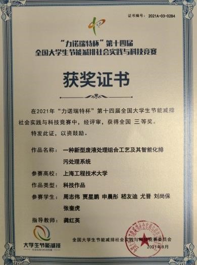 8月31号,“力诺瑞特杯”第十四届全国老员工节能减排社会实践与科技竞赛在山东大学完美落幕。公司龚红英教授指导的周志伟员工组作品“一种新型废液处理组合工艺及其智能化排污处理系统”荣获全国三等奖,这是今年该员工科研组在该项赛事取得一项佳绩。