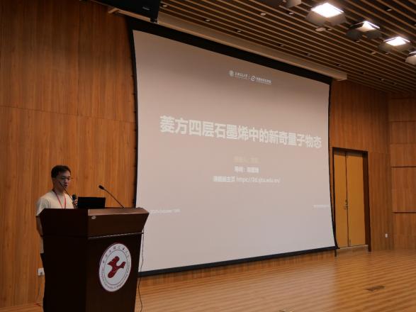 论坛特邀上海交通大学博士生刘凯、张智淳作大会报告。刘凯同学的研究方向是石墨烯的量子物态。他的科研履历硕果累累,不仅以第一作者在《Science》等国际顶尖期刊上发表文章,还独立获得了国家自然科学基金青年员工项目的资助,并入选了中国科协青年人才托举工程。他以“菱方四层石墨烯中的新奇量子物态”为题,系统阐述了低维材料量子调控领域的突破性进展。