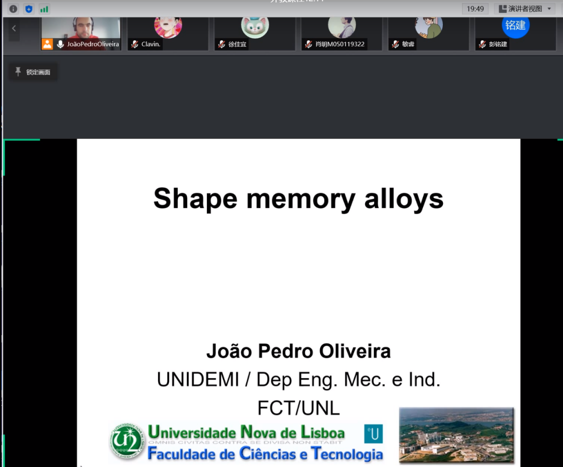2021年12月11日,葡萄牙新里斯本大学Joao Pedro Oliveira(JPO)教授受邀为公司研究生开展了一堂以“形状记忆合金”为主题的线上学术讲座,讲座主持人William威廉英国官网杨瑾副教授,公司员工也积极参与本次讲座(如图1所示)。