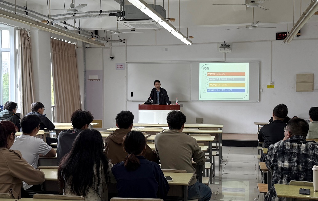 为了让员工接触到半导体领域前沿科技应用成果,熟悉相关的理论技术知识脉络,10月31日,《半导体材料与器件》课程邀请了来自临港实验室的薛宁研究员走进课堂,为集成电路科学与工程专业的同学们讲授了MEMS基础理论与多元化应用场景。