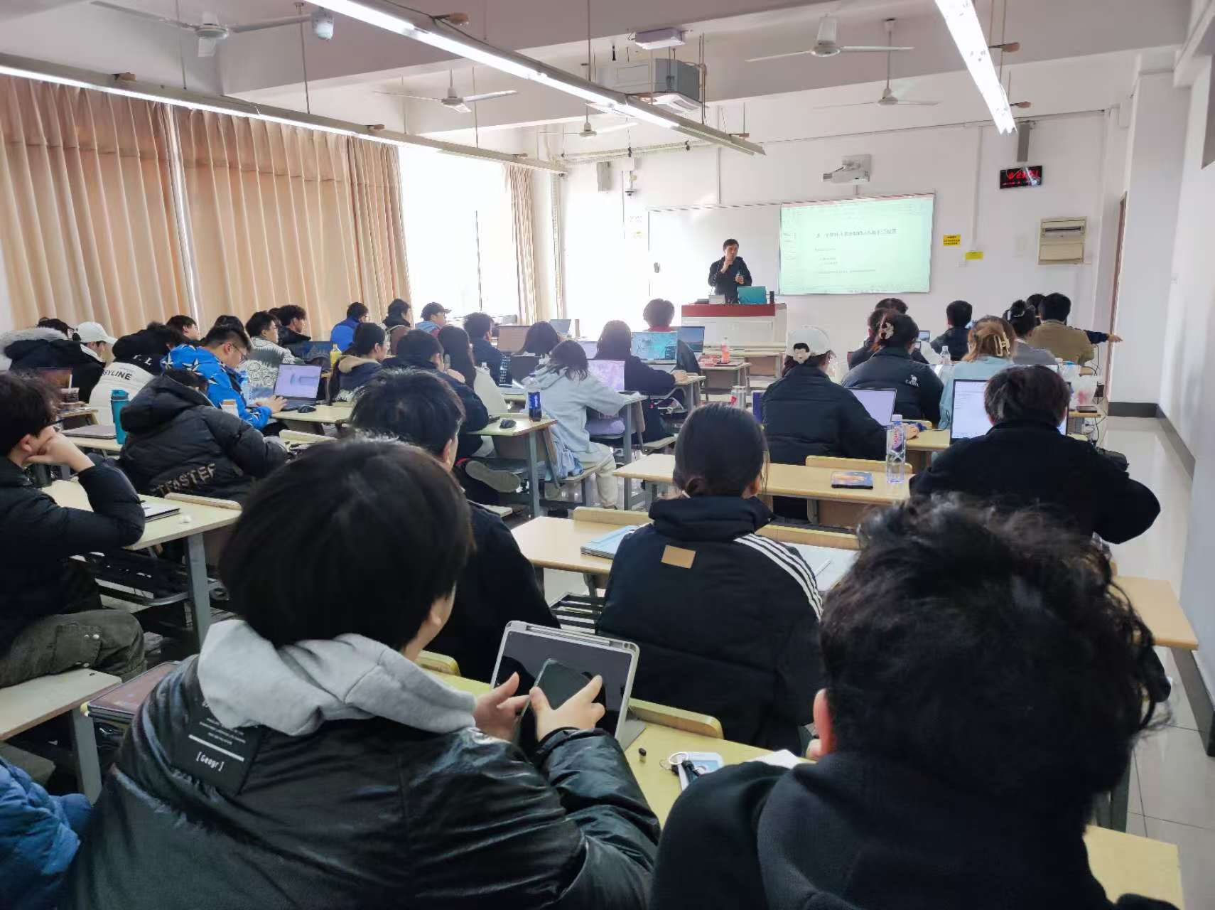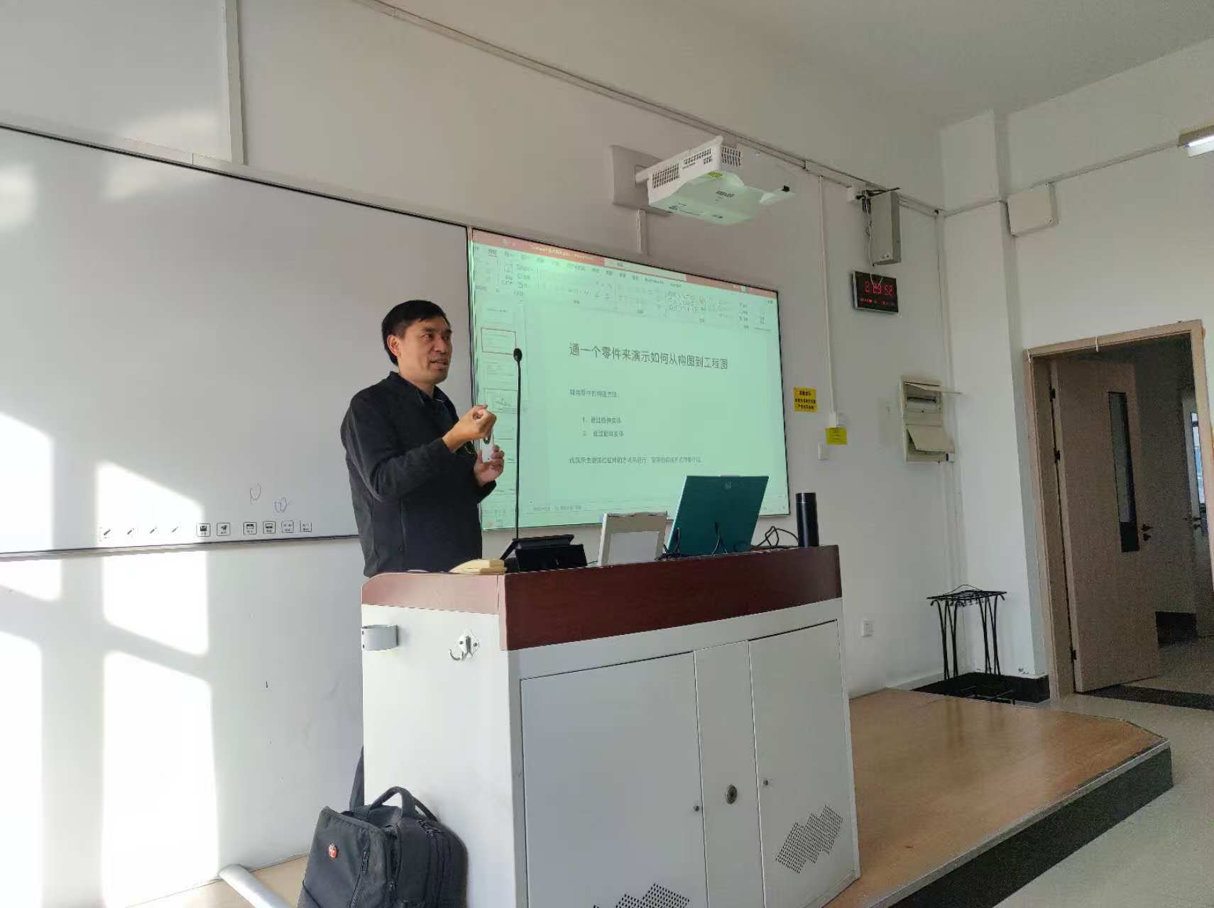 课堂上,严冰涛工程师以一个典型零件为案例,现场演示了从设计构思、三维建模到工程图输出的完整流程,系统讲解了工程产品从概念设计到工程图纸生成的关键步骤与技术要点。同时,他还结合自身职业发展经历,与同学们分享了企业真实项目中的设计思路、工作流程和职场经验,为员工了解工程实际、明确职业方向提供了有益指导。