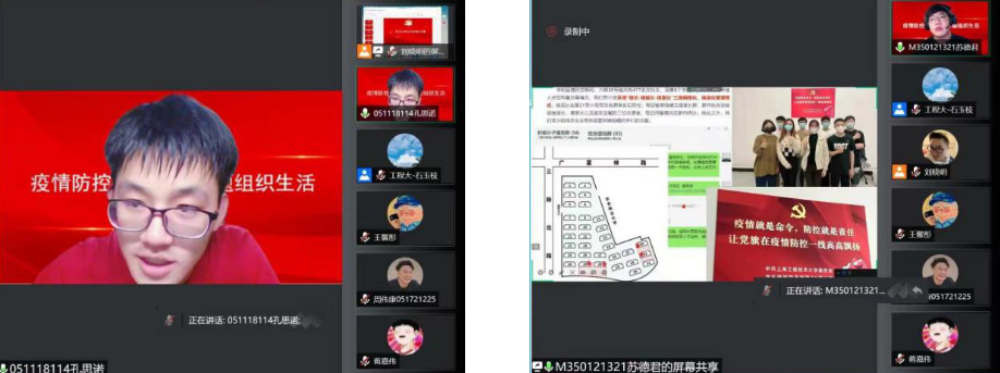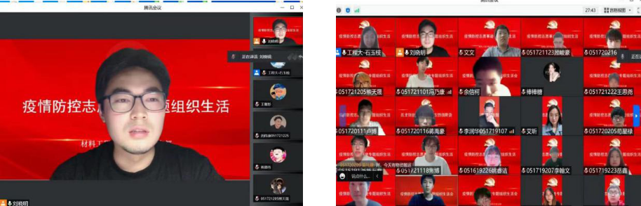 本科生第二党支部书记刘晓明介绍了当前疫情防控形势,传达了教卫工作党委的明确指示,做好疫情防控工作是当前公司的首要政治任务,坚决打赢这场疫情防控的大仗硬仗是我们必须扛起的重大责任。在当前这个紧要关头、关键时刻,公司党员师生第一时间响应组织号召,投身疫情防控一线,敢于担当、勇于担当,充分展现了材料人的精神风貌。