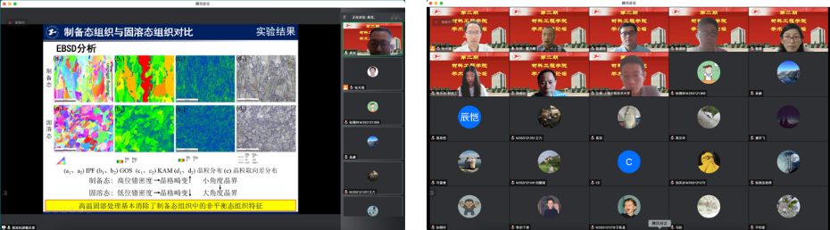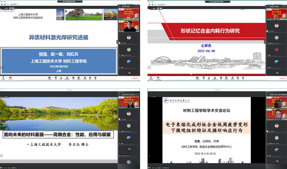 会上,由各系室中心推选的科研能手做专题报告。电子封装与技术系鲁娜教授做题为《基于纳米酶和生物分子结合界面的生物传感应用研究》报告,鲁教授基于一维无机纳米复合材料的类过氧化物酶活性,构建了比色型生物传感器用于蛋白质超灵敏检测;提出不同结构核酸分子作为配体,设计不同的生物纳米界面,实现对无机纳米酶催化活性高精度可控调节和基因快速检测;采用不用组装方式构建了不用纳米酶生物界面,有效提高了生物界面对于细菌的亲和性和识别能力。焊接技术与工程系陈捷狮副教授做题为《面向3D集成电路微/纳尺度Cu-Sn界面行为研究进展》报告,就固液界面Cu-Sn的生长、固态老化、生长动力学等方面做了综述,并指出三维集成电路封装应重点关注尺寸效应带来的界面冶金效应行为,识别界面生长动力学的主导生长机制。杨瑾副教授做题为《异质材料激光焊研究进展》报告,就焊接热循环调控、元素合金化调控、界面多孔化调控、润湿与反应机理、动载荷服役条件和应力测试与调控等方面进行了综述。左舜贵博士做题为《形状记忆合金内耗行为研究》报告,着重就形状记忆合金及内耗的研究背景、应变玻璃和MnCu合金内耗行为等进行了报告。李方杰博士做题《面向未来的材料重器——高熵合金:性能、应用与展望》报告,介绍了团队在高熵合金方面的系列研究进展。兰亮博士做题为《电子束熔化成形钛合金低周疲劳变形下微观结构特征及循环响应行为》报告,介绍了增材制造钛合金低周疲劳的国内外研究现状及电子束熔化成形钛合金低周疲劳行为的最新科研进展。高双博士做题为《激光选区熔化IN625镍基高温合金长期时效组织及性能演变规律研究》报告,介绍了IN625镍基高温合金的国内外研究现状,并展示了实验结果。