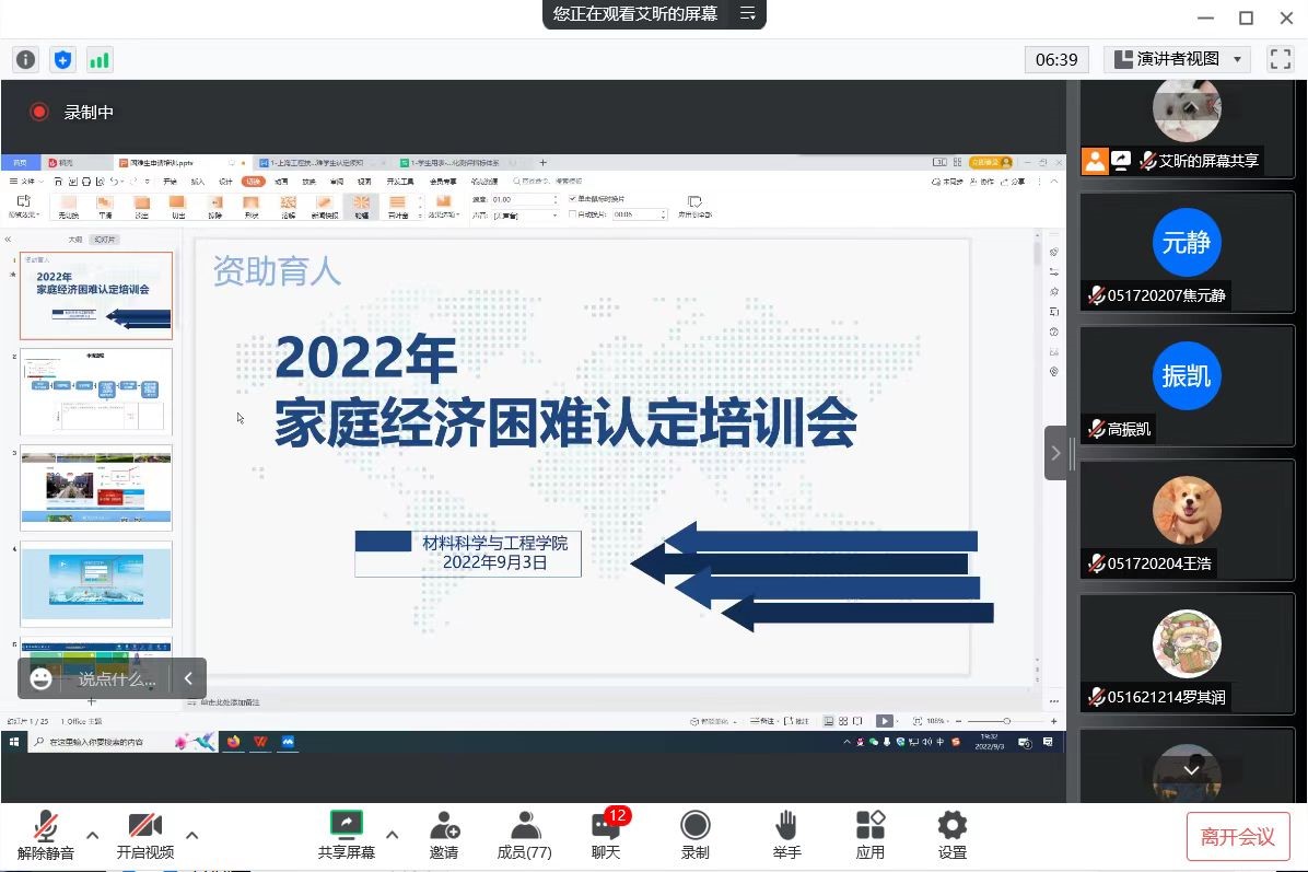 为进一步做好2022-2023年度家庭经济困难员工认定工作,落实公司资助工作要求,9月3日、14日,William威廉英国官网面向老生和新生先后召开家庭经济困难认定线上培训会暨新生资助政策线上宣讲会,公司资助工作负责老师艾昕、公司资助大使龙明垚,以及各年级相关员工参加了会议。