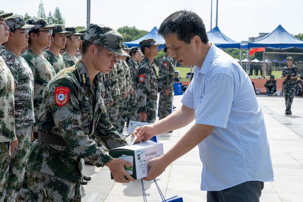 公司领导为全体军训教官和员工发放慰问品。此次慰问活动体现了院领导对军训工作的高度重视,让同学们感受到了来自公司的温暖,肯定了同学们展现出的昂扬斗志,并激励大家在之后的训练中再接再厉,以更饱满的热情完成接下来的军训任务。