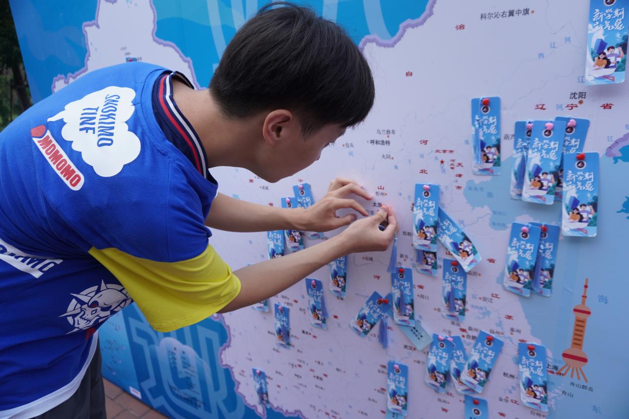 为了欢迎公司新同学,公司开展 “一路‘程’‘材’·书香启航”特色活动,在迎新点放置了包含所有新生家乡的中国地图板,萌新们把对未来的祝福语和愿望写在定制书签上,悬挂在地图上的家乡所在处,寓意从四面八方来到工程大,泛舟学海后奔赴未来。