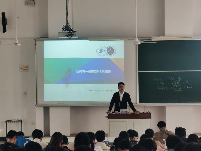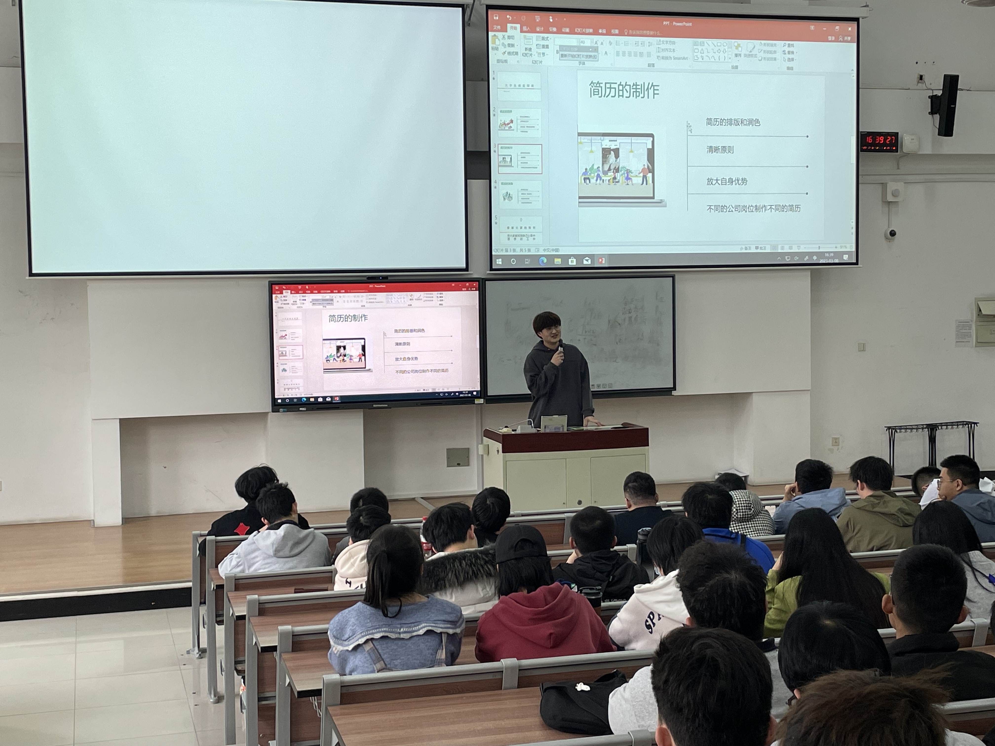 胡学帅同学签约上海电驱动股份有限公司,他从“如何写一份吸引到HR的简历”入手,强调在求职时简历的重要性。他认为简历要有真实性、准确性、针对性,同时兼顾个性化。并就制作简历与同学们积极互动,现场反应热烈。