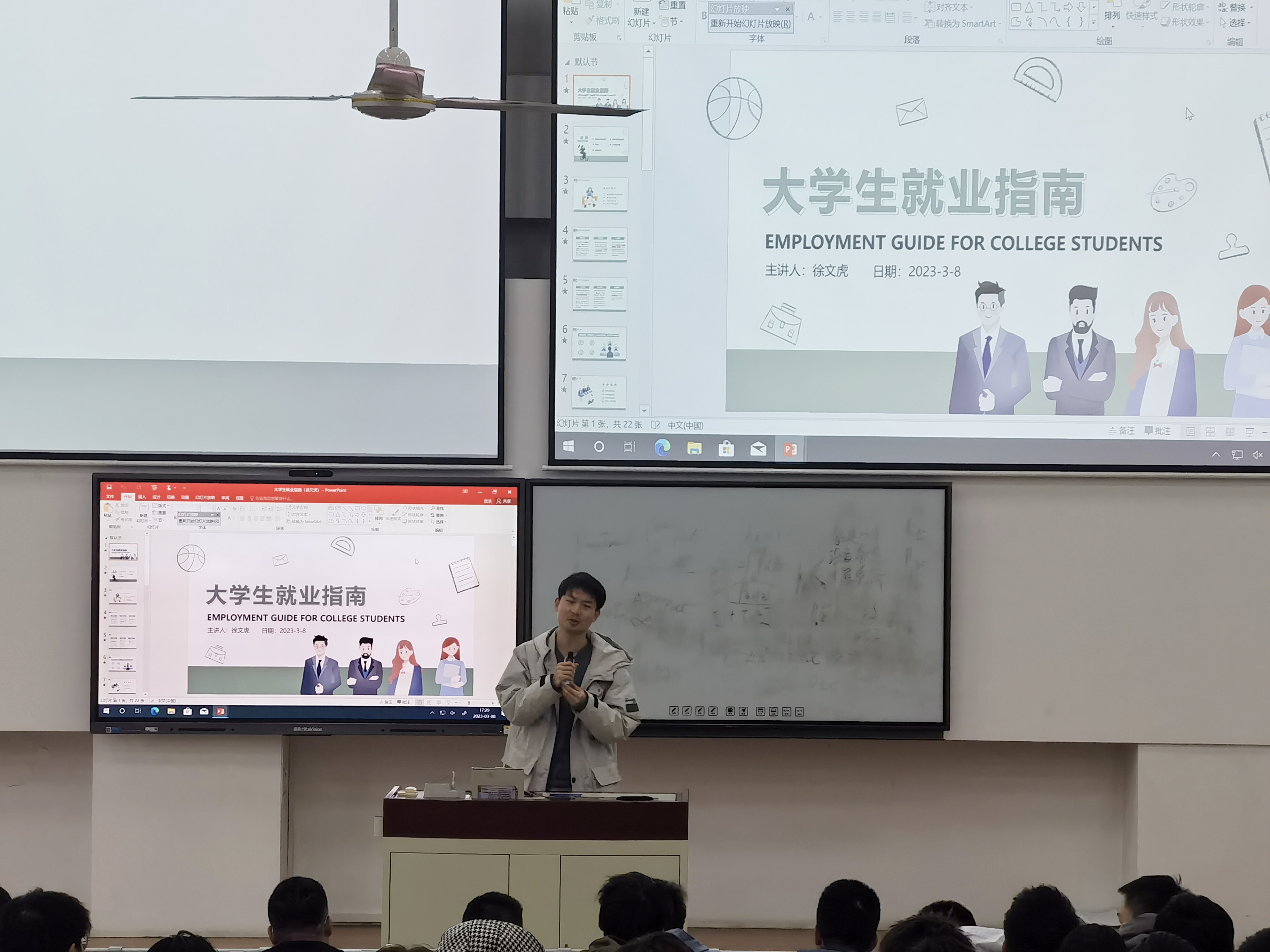 徐文虎同学签约延锋集团,他主要向同学们分享了他的面试的经验,建议同学们“实事求是、随机应变、保持冷静、举止得体”。同时在面试之前一定要做好充足准备,知己知彼才能百战不殆。