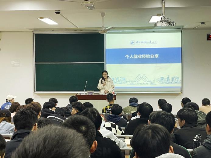 陈俊楠同学签约杭州积海半导体有限公司,她从“自我认知、行业选择、简历美化和面试技巧”四个方面向同学们分享了自己的求职经验。她认为选择职业首先要清晰地认识自己,然后要仔细地了解企业,这样才能选到一份让自己满意的职业。