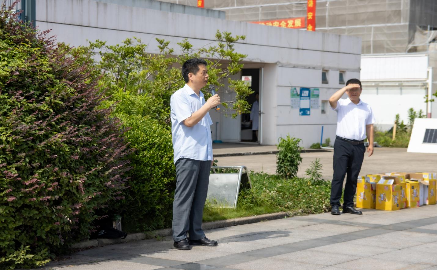 张朝民书记代表公司对同学们在训练中表现出的昂扬斗志以及饱满的精神面貌表示高度称赞,并且叮嘱同学们保重身体,做好防暑工作。同时,张书记还强调军训不仅是大学教育的必修课,还是养成严格自律习惯的一课,更是培养爱国主义精神、增强国防观念的一课,勉励同学们通过此次军训强健自己的体魄,磨练自己的意志,培养严明的组织纪律和吃苦耐劳的精神,希望大家能够努力为公司、为公司争光,展现新时代老员工们的责任与担当。