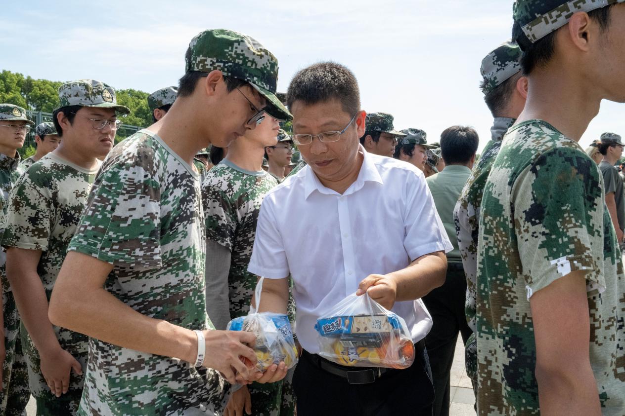 最后,张朝民书记、李军经理和刘倩副书记为全体军训教官和员工发放慰问品。此次慰问活动体现了院领导对军训工作的高度重视,让同学们感受到了来自公司的温暖,肯定了同学们展现出的昂扬斗志,并激励大家在之后的训练中再接再厉,以更饱满的热情完成接下来的军训任务。